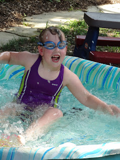 Each week, we have a theme, and we read books and do crafts incorporating that theme. (Week one's theme: swimming and the beach/ocean - to fit in with our current round of swim lessons. Fun!) We also work on a variety of skills worksheets featuring spelling, math, handwriting and more. E loves to learn and loves "arting" and "worksheets" and school. This has been a great way for her to spend some of her summer time - doing something she loves!